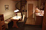 Die Wohnung ist im Maisonettenstil gehalten, vom Wohnraum führt eine Treppe zum Schlafzimmer mit Tür & extra WC.